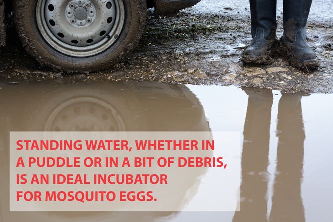 Standing water is the best habitat for mosquito larvae to develop.