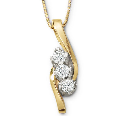 14k yellow gold princess cut diamond past present future necklace pendant. Fine necklaces and chains for a fashionable look. Nothing finishes off an outfit like a fine necklace and jcpenney has a broad selection. She ll say yes too when you re down on one knee presenting her with one of our gorgeous three stone engagement rings set in yellow or white gold browse our whole selection of three stone diamond rings and you ll be sure to find one that will put a smile on her face.